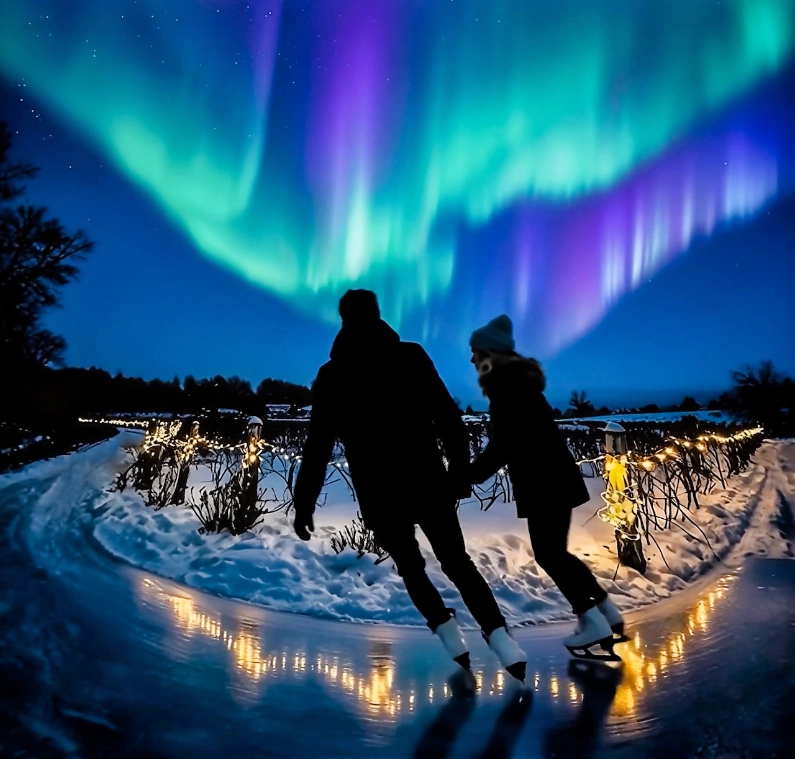 - If you want something genuinely different, check out the Northern Lights Ice Skate Trail at Potter Settlement Artisan Wines in Tweed—about ~41 km north of Napanee. It’s one of those experiences that feels almost unreal: lights, forest air, and that quiet winter glow.(Note picture of skating is from their website)