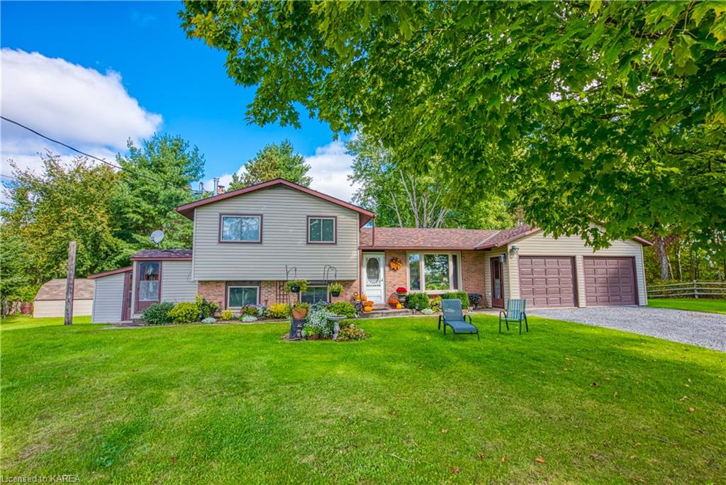 backyard which is perfect for family activities, or sit back and enjoy your expansive deck. For outdoor lovers, the South Frontenac area is home to the K&P trail, conservation areas, provincial parks, and many lakes and ponds suitable for boating, kayaking, and fishing. The home is located on the south side of Verona, at the end of a quiet street, and is just 25 minutes north of Kingston. Quick