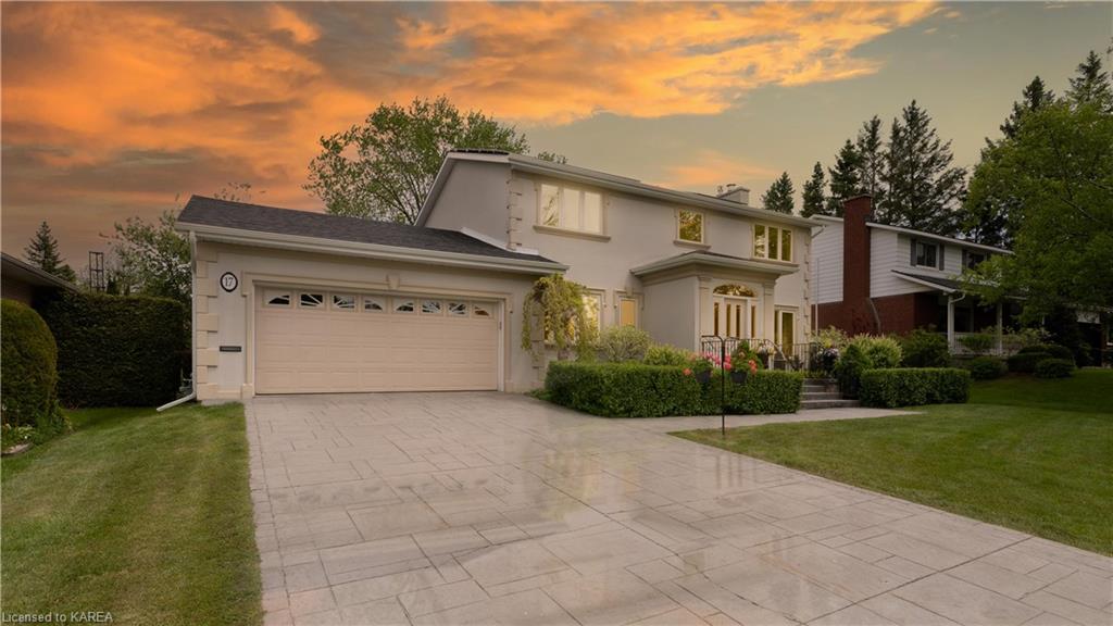 Welcome to 17 Fairway Hills Crescent! There is something special about this place that makes you feel right at home. With its elegant stucco exterior & charming curb appeal, it effortlessly captures your attention. This eco friendly home embraces the future of sustainable living. In 2022, the property underwent an exciting transformation with addition of R-60 insulation in the majority of the attic and the installation of 26 solar panels, creating a net metered connection. Inside, you will discover a spacious layout with approx. 2400 above ground sq. ft. The basement is over 900 sq. ft offering plenty of storage, a sauna & it has a finished 400 sq.ft rec. room with a cozy gas fireplace. This home has 4 bedrooms, 3+1 bathrooms, a main-floor office, & 3 cozy gas fireplaces. It’s a comfortable and inviting space that caters to your every need. As you enter, the vestibule welcomes you with a patterned heated concrete floor, reflecting the attention to detail & high-quality finishes throughout the house. The kitchen was renovated in 2022. It features modern appliances, ample storage space, and a layout perfect for entertaining. It is a place where you can let your culinary skills shine. Located in a prestigious area, this property offers convenient access to a variety of amenities. Within just a short 5-min drive, you will find Queen’s University, Kingston General Hospital, the Cataraqui Golf & Country Club, shopping options, and schools. It is a highly desirable location that suits both professionals and families. Don’t miss out on this exceptional opportunity to own a beautiful home in one of Kingston’s most sought-after neighborhoods. This rare gem effortlessly combines comfort, luxury, and practicality, creating the ideal place to call your own. Embrace the chance to live in a stunning property that caters to both family life and professional aspirations. Welcome to your new home—where simplicity meets elegance.