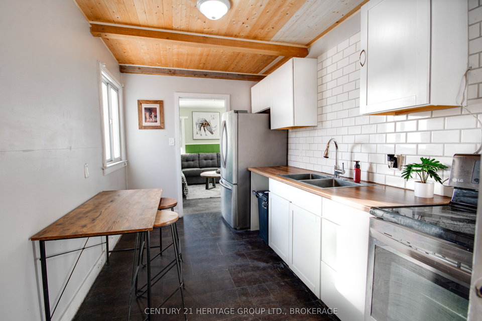 Welcome to this charming 2-bedroom, 1-bath home full of opportunity. Small in size but big on potential, this property is ideal for first-time buyers or investors looking to get into the market.The bathroom was fully updated in 2020, and the galley-style kitchen was also refreshed in 2020, offering a functional layout with modern finishes. The bedrooms feature original hardwood floors, with additional original flooring tucked under the living room, ready to be brought back to life.At the back of the home, a versatile bonus room adds real value. Use it as a home office, dining room, workout space, or even a third bedroom. The layout is flexible and ready for your ideas.Outside, enjoy a good-sized, fenced yard with mature trees that provide shade and privacy. A back deck creates a great spot for relaxing or entertaining. The garage/shed offers extra storage or workshop space. With a little bit of work, this home has clear upside and room to grow in value. Located on Kingscourt Ave, you're close to shopping, schools, and downtown-everything you need within easy reach. Comfortable now. Flexible for the future. A great place to start and a smart place to invest.